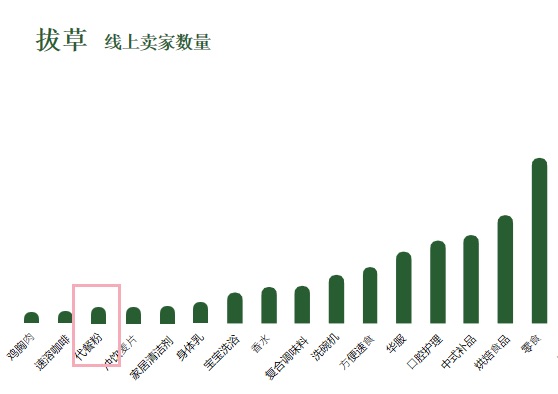 根據(jù)青山資本對熱度高的行業(yè)做了種草/拔草分析,可以看出,代餐正處于賣家少、增速快的產(chǎn)品導(dǎo)入期。